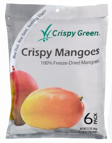 100% freeze-dried Mangoes slices; light, crunchy with fresh Mango taste.Crispy Green Fruit Snacks, Crispy Mangoes, 2.2-Ounce Pouches (Pack of 3) Feature
