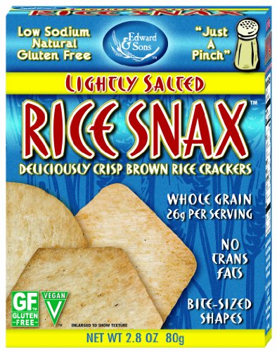 Edward & Sons Rice Snax Lightly Salted are deliciously crisp brown rice crackers. Baxed - not fried - and topped with great natural seasonings, these bite-size whole grain crakers are thin, crisp and absolutely scrumptious! Available in 4 yummy flavors, all feature simple, wholesome ingreditents you feel great about eating...and sharing. Keep plenty on hand for guests and pack them in lunch boxes as tasty natural treats.Edward & Sons Rice Snax Lightly Salted, 2.8-Ounce Boxes (Pack of 12)Item Brand