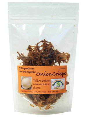 When members of the Sunfood team tried these onion crisps, the same comment was repeated again and again: "I can't believe these are raw!" Sunfood is proud to present a simple crisp with a luxurious flavor, elevating the humble onion to new heights of taste and enjoyment. Perfect on their own or combined with raw olives and totally raw cashews, these onion crisps are a delicious snack. Versatile in recipes, these onion crisps also provide a flavorful boost when blended into pesto, crumbled over salads, or layered into sandwiches. Onions are naturally high in sulfur, also known as the beauty mineral. However you enjoy them, these satisfying crisps are a savory, tempting, snack any time of the day! Ingredients: Yellow onions, olive oil, Nama Shoyu. All Organic and All Raw. Net Wt. 1.5 ozAimee's Livin' Magic Over the Top Onion Crisps, Raw, Organic - 1.5 Ounces Feature