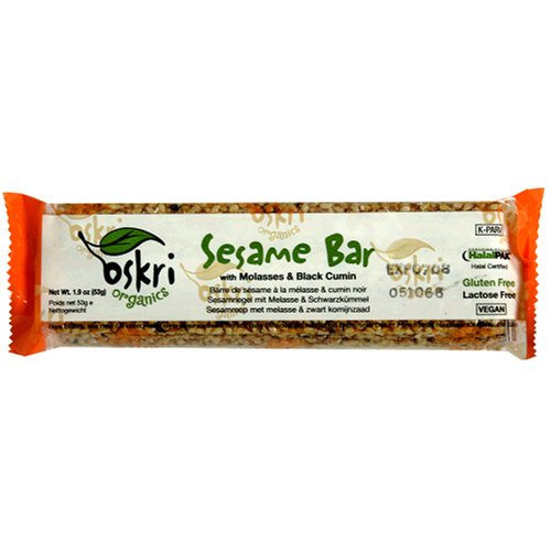 Gluten free. Lactose free. Vegan. Certified by HalalPak. Made in the USA.Oskri Sesame Bars with Molasses & Black Cumin, Gluten Free, 1.9-Ounce Bars (Pack of 18) Feature