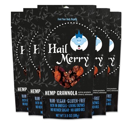 Hail Merry first soaks the nuts, seeds and buckwheat groats in her Grawnola to activate the living enzymes. We then dehydrate at very low temperatures to protect these enzymes as well as the delicate essential fatty acids found in this nutrient dense nut blend. Designed to be enjoyed by the handfuls and is low in sugar and carbs to help maintain low blood glucose levels. Hemp protein also contains all the amino acids necessary for muscle repair. Enjoy Hail Merry snacks and know that you are Feeding Your Body Royally.Cherry Almond Hemp Grawnola (Pack of 8) Feature