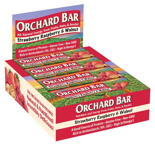 All natural energy bars from fruits, nuts and seeds. A good source of protein and Omega 3. No preservatives,60% Organic, Non-GMO, Vegan, Kosher, dairy free and Gluten-FreeOrchard Bars Strwberry, Raspberry & Walnut Bars, 1.6-Ounce Bar, 12-Count Feature