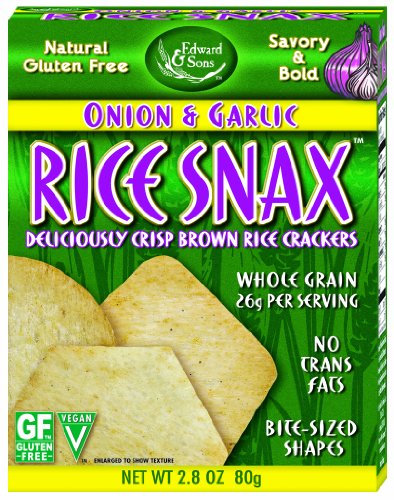 Edward & Sons Rice Snax Onion and Garlic are deliciously crisp brown rice crackers. Baxed - not fried - and topped with great natural seasonings, these bite-size whole grain crakers are thin, crisp and absolutely scrumptious! Available in 4 yummy flavors, all feature simple, wholesome ingreditents you feel great about eating...and sharing. Keep plenty on hand for guests and pack them in lunch boxes as tasty natural treats.B003JYEJAQASIN